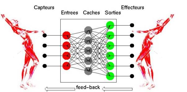 au module comportemental. Une ou plusieurs couches intermédiaires de neurones