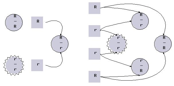R/R et r/r désignent les deux homozygotes. R/r rt r/R désignent