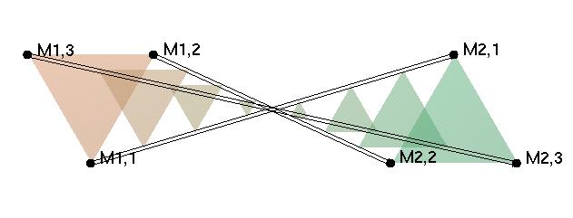 portée par le segment M2M1. V1 et V2 sont donc très différentes