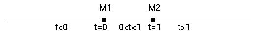 Pour t variant de 0 à 1 le point M(t) décrit le segment [M1M2].